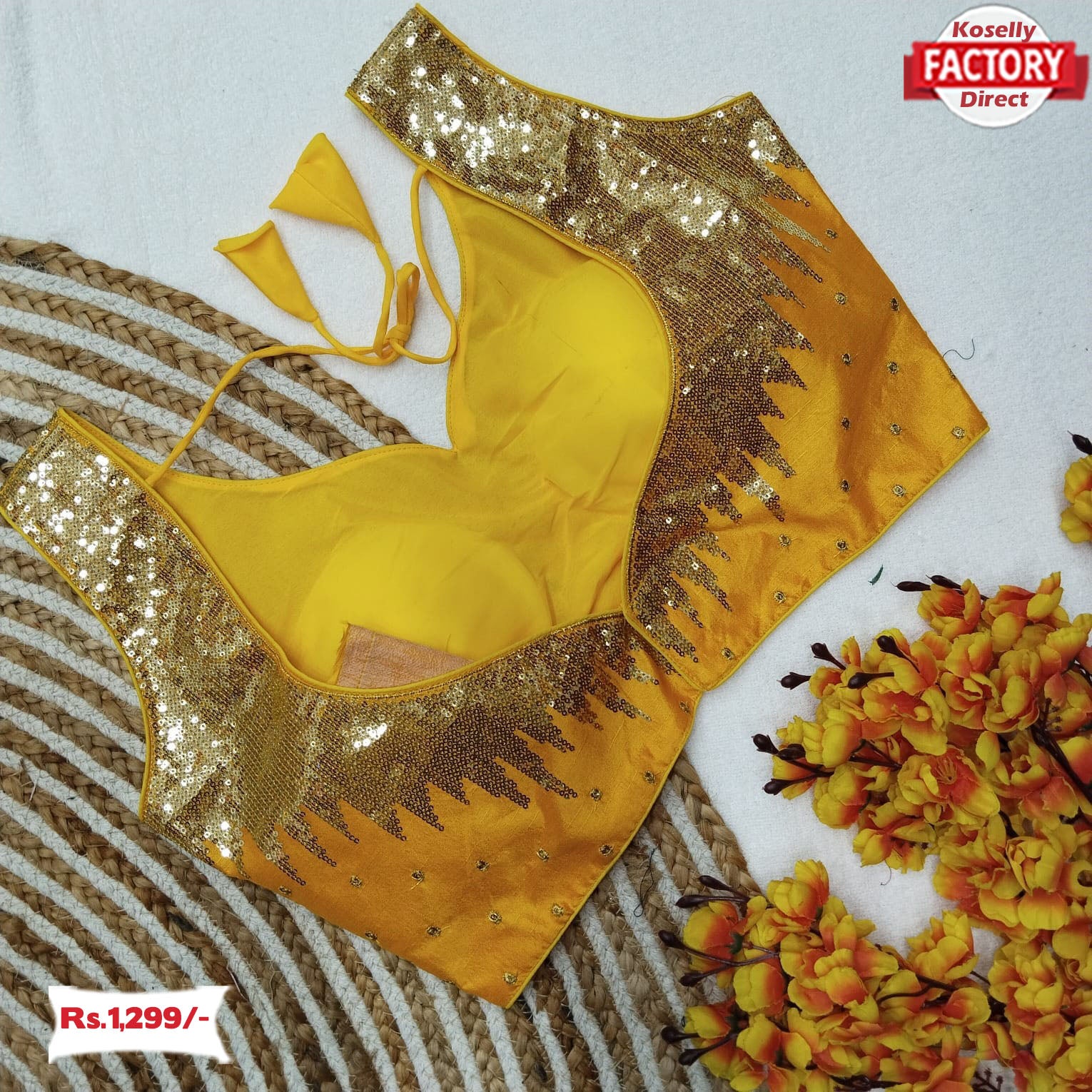 Yellow Silk Blouse With Fancy Sequins Work