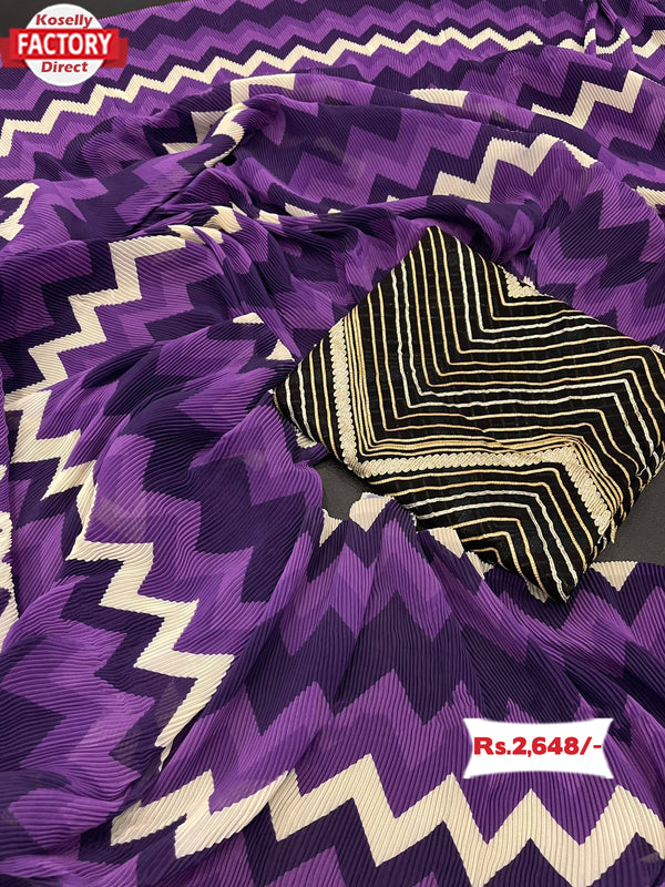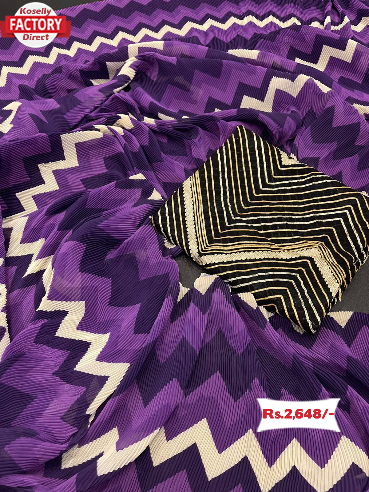 Zigzag Pattern Crush Saree With Gotapati Blouse Piece